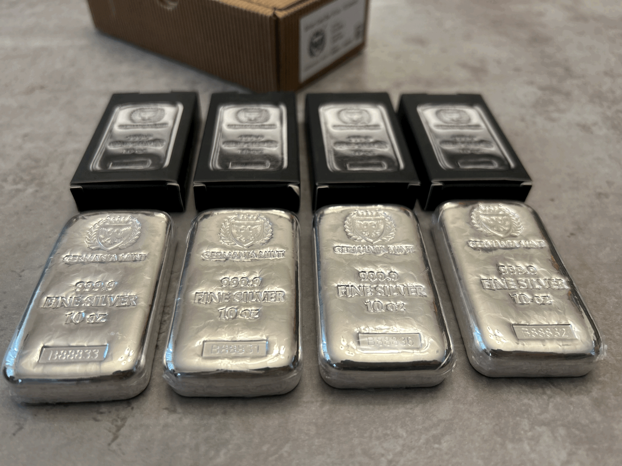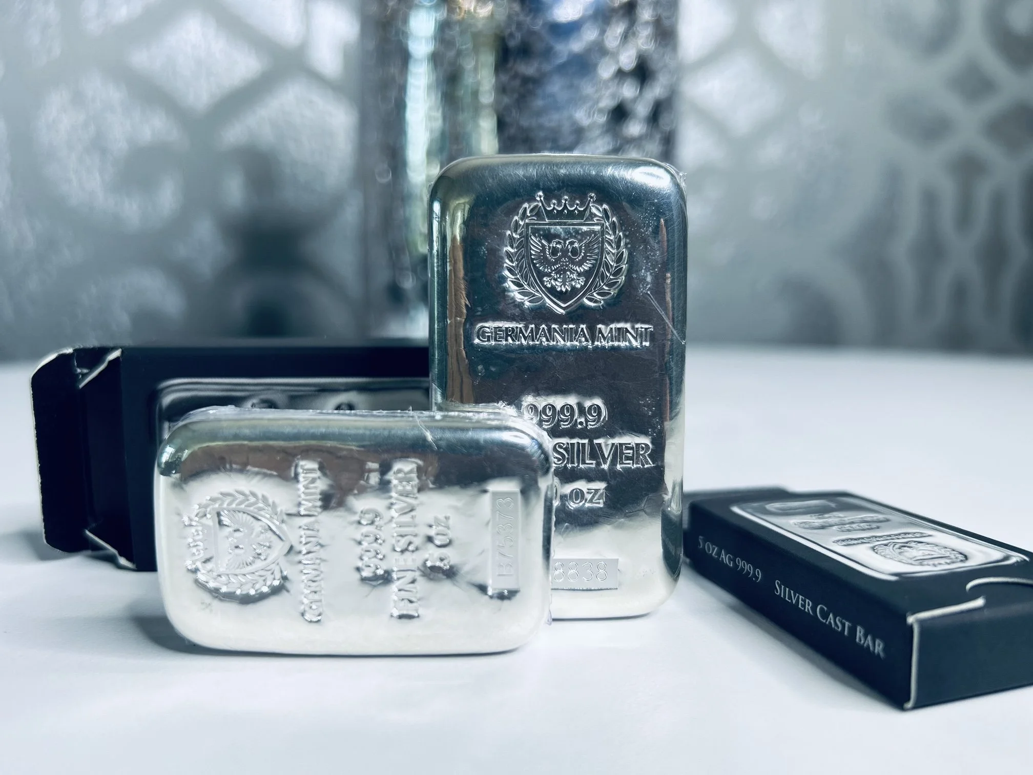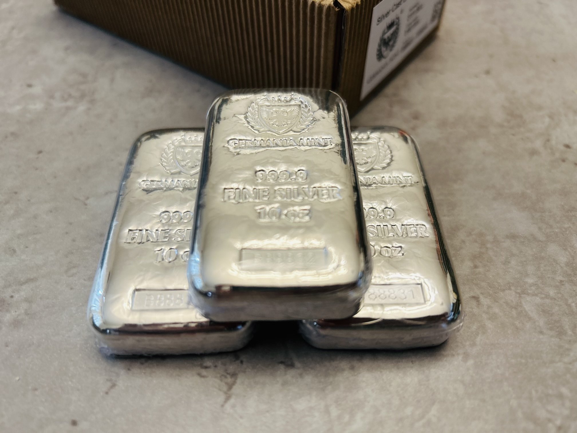 Gold & Sliver SHOP Premium Silver Buffalo Coin Collection $299.00 Premium Silver Buffalo Coin Collection Added! Silver Kilo Bars $2,899.00 Silver Kilo bars 999 fine Silver 1000 grams. Added! 5 gram Gold Bar - Credit Suisse Statue of Liberty (New Assay) $869.00 Add To Cart Added! 2.5 gram Gold Bar - PAMP Lady Fortuna Veriscan (In Assay) Sale Price: $0.00 Original Price: $0.00 Sale Add To Cart Added! 1 gram Gold Bar - Valcambi $199.00 Add To Cart Added! 2.5 gram Gold Bar - PAMP Lady Fortuna Veriscan® (In Assay) $469.00 Add To Cart Added! Scottsdale Gold 2 g Lion Gold Bar $449.00 Add To Cart Added! 2022 1 Gram .9999 Canadian Gold Maple Leaf Coin $219.00 Sold out Sold Out Added! 1 oz Gold Bar Argor Heraeus New w/Assay $5,100.00 Add To Cart Added! 50 x 1 g Gold CombiBar $0.00 Sold out Sold Out Added! 1 oz Gold Bar Valcambi w/Assay Valcambi Mint $5,099.00 Add To Cart Added! 2024 1 oz. 99.99% Pure Gold Wafer (Bullion) $5,150.00 Sold out Sold Out Added! Australian Kookaburra Strike 10 oz $999.00 Add To Cart Added! American Gold Eagles $0.00 Sold out Sold Out Added! Silver 10 oz Germania Mint Cast Bar $289.00 Add To Cart Added! 1 oz Silver Round - Buffalo $89.99 Add To Cart Added! Unity In Liberty 10 oz Silver Bar (New) Sale Price: $299.00 Original Price: $299.00 Sale Add To Cart Added! 2023 1 oz Armenian Silver Noah's Ark Coin (BU) $99.99 Add To Cart Added! 5 oz Silver Bar - Germania Mint (Serialized) $449.00 Add To Cart Added! 10 ounce Silver Bars $895.00 Add To Cart Added! 40% Silver Kennedy Half Dollars $12.00 Add To Cart Added! $999.00 Add To Cart Added!